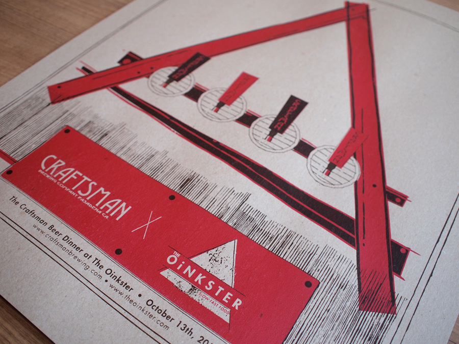 Hand screened, 2 color poster designed by our good friend Justin Van Hoy. These were made for a beer dinner with our friends Craftsman for L.A. Beer Week 2010. Edition of 50.